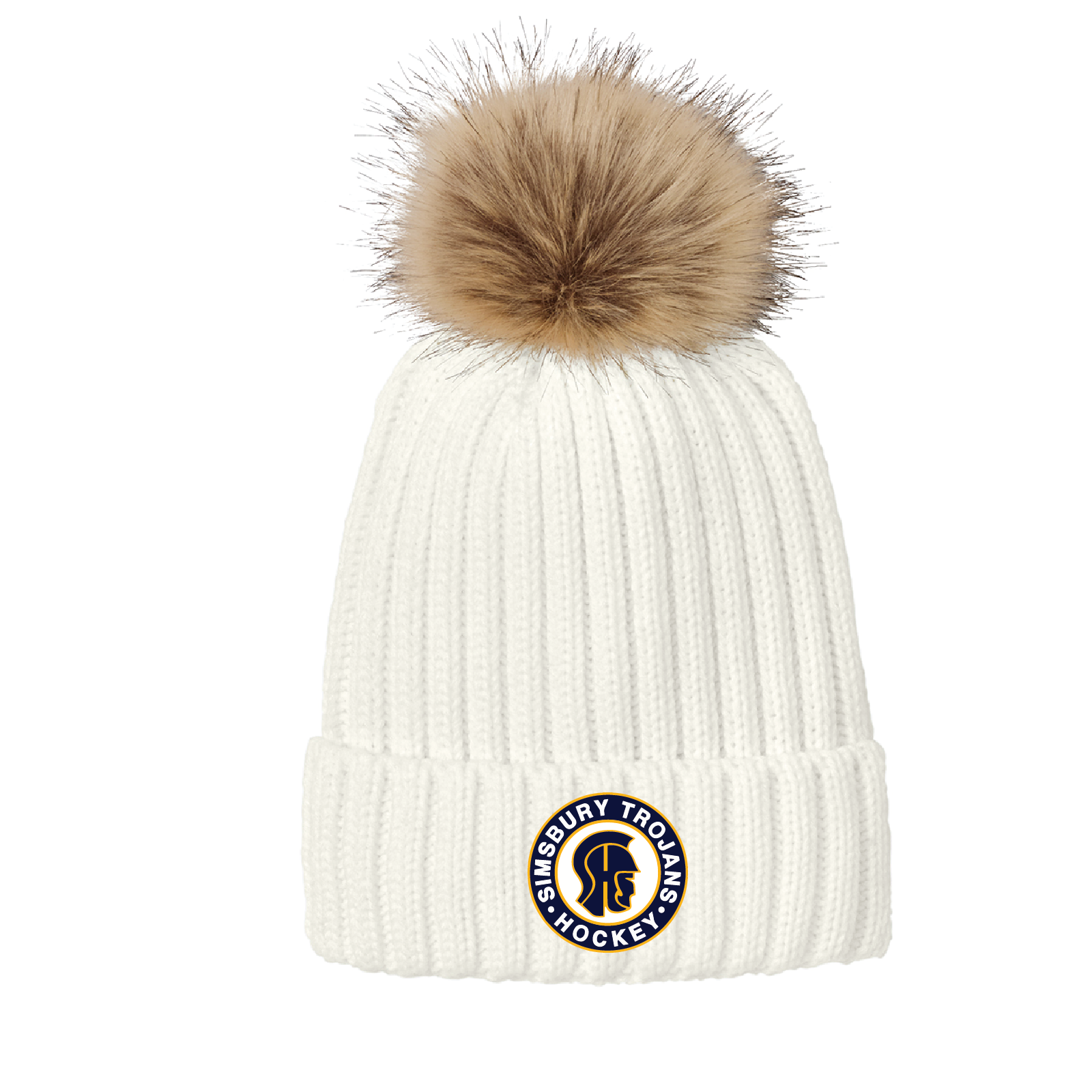 SHS Trojans Hockey: Faux Fur Pom Beanie. C990